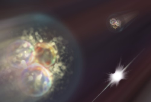 Fot. Gdy dwa wysokoenergetyczne protony z przeciwbieżnych wiązek akceleratora LHC się zderzają, entropia oddziałujących ze sobą kwarków i gluonów jest praktycznie identyczna jak entropia hadronów rozbiegających się później z miejsca zderzenia.