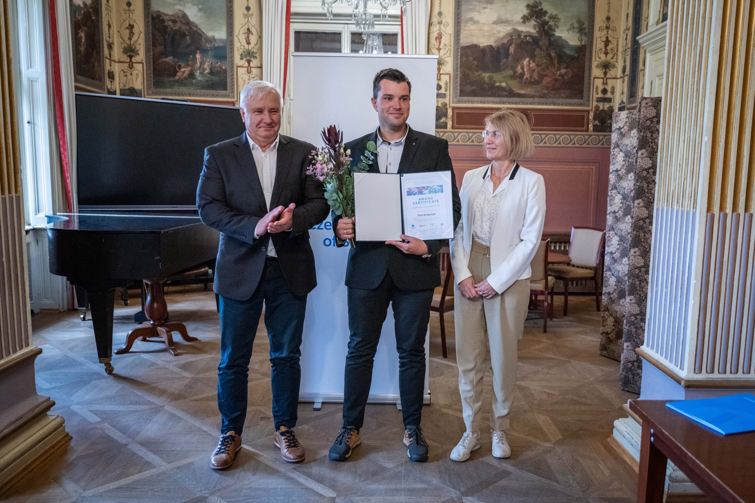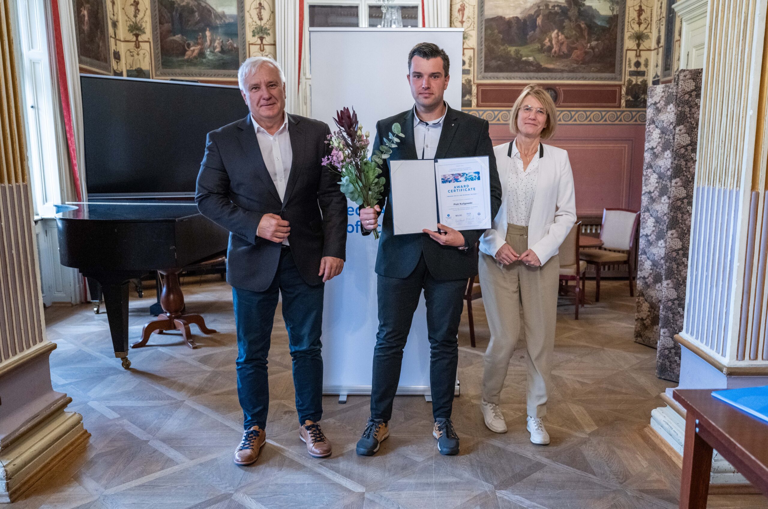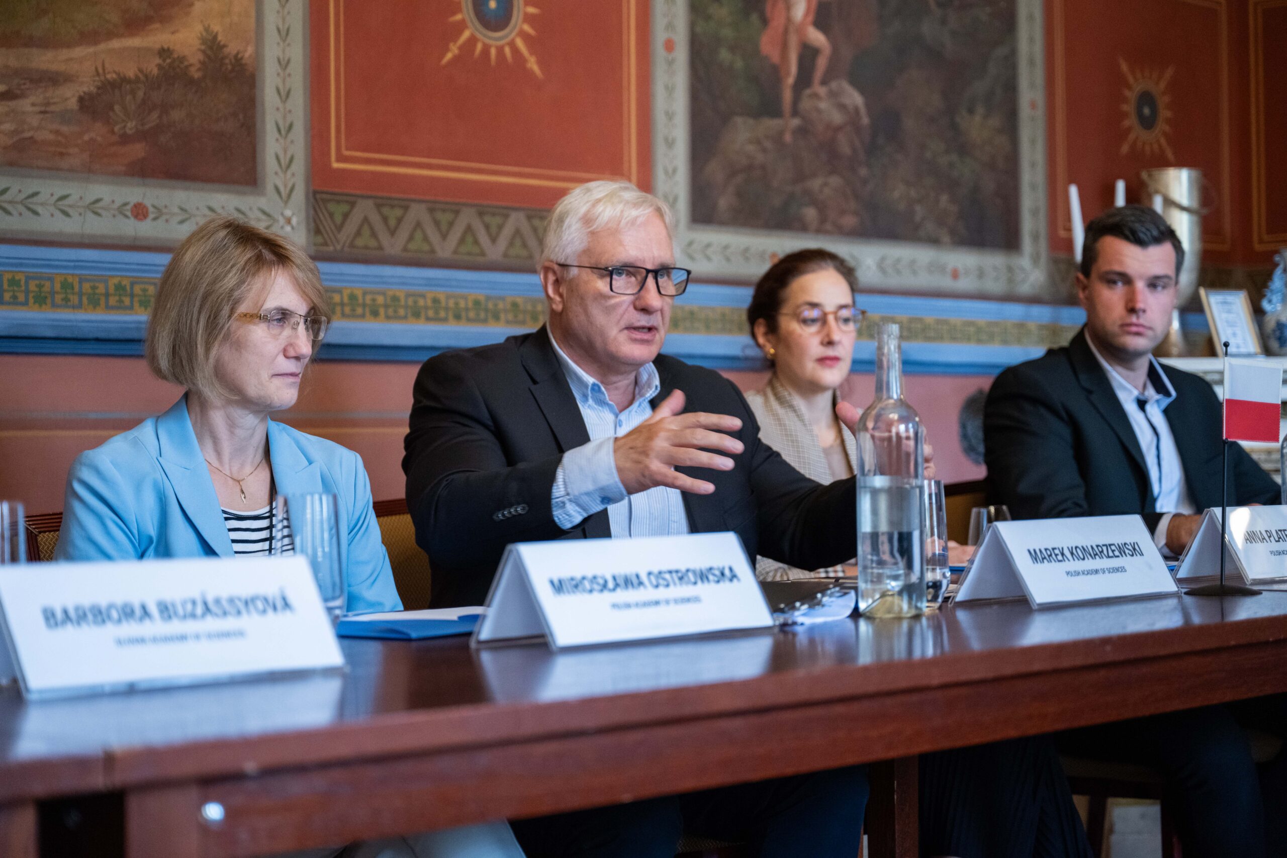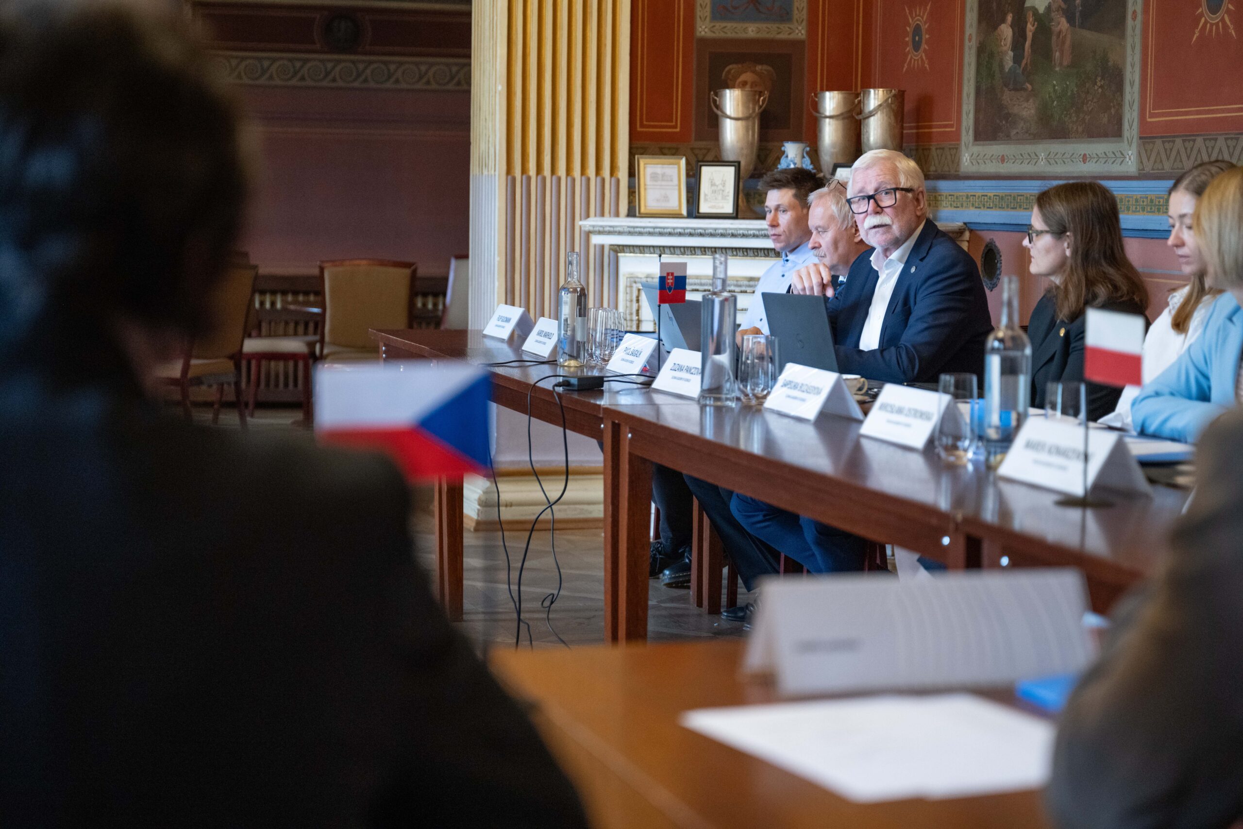 On October 1-2, 2024, the delegation of the Polish Academy of Sciences headed by President Prof. Marek Konarzewski took part in the annual Visegrad Group Academies Forum this year organized by the Czech Academy of Sciences in Prague. Participants of the meeting discussed, among others, recent changes in the Academies, knowledge transfer, reform of the research assessment, and security in international scientific research. Much attention during the debates was devoted to the issue of the unfavourable proportion of women in the V4 Academies of Sciences. The Forum was concluded with a Prize ceremony and presentations by the laureates of the Young Researcher Award, which this year was conferred in the field of “Contemporary Social and Economic History.” The winner of the Polish part of the 2024 competition was dr Piotr Kuligowski from the Institute of History of the Polish Academy of Sciences.