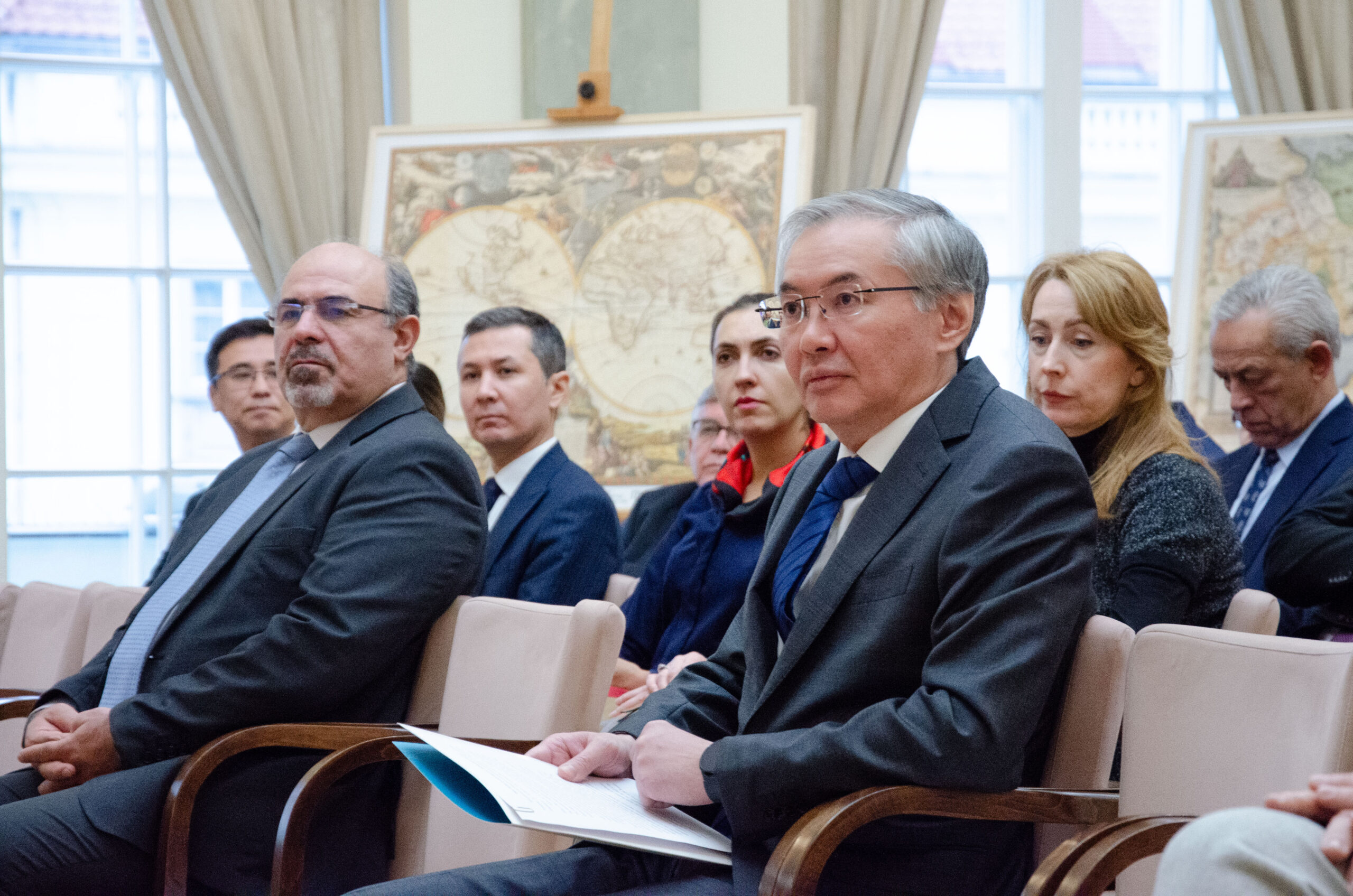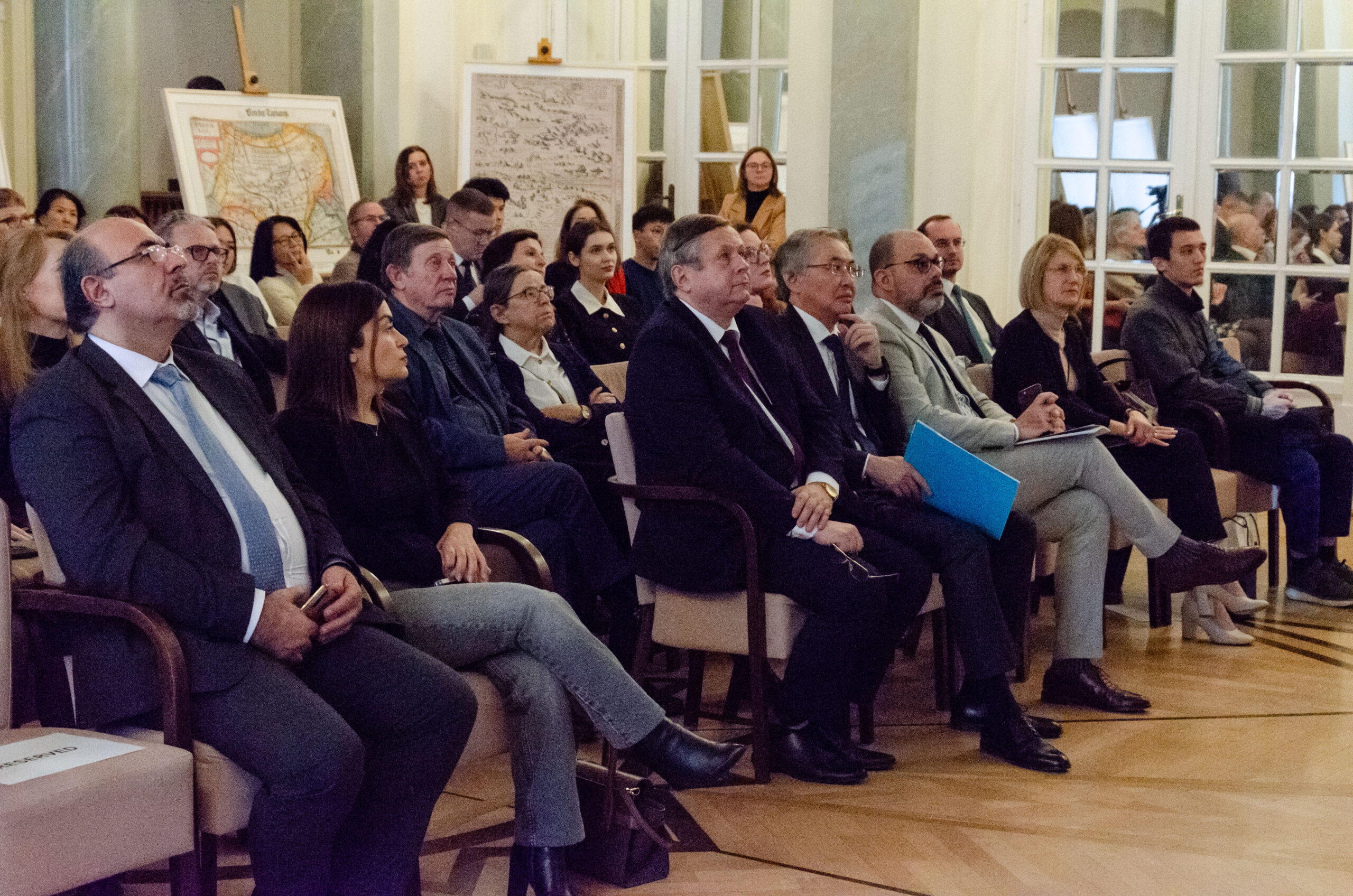 The exhibition is the result of 17 years of research by Dr. Mukhit-Ardager Sydyknazarov from the Gumilev Eurasian National University who has collected thousands of documents, including maps, from leading libraries, museums, and archives in Europe, the United States, and the Middle East, which attest to the continuous historical statehood of Kazakhstan. Each map is a testament to the era in which it was created, while also illustrating the unbroken presence of Kazakhstan as a vital part of the global geopolitical mosaic – a theme Dr. Mukhit-Ardager Sydyknazarov presented to guests in his speech. Afterward, all participants had an excellent opportunity for discussion and questions.