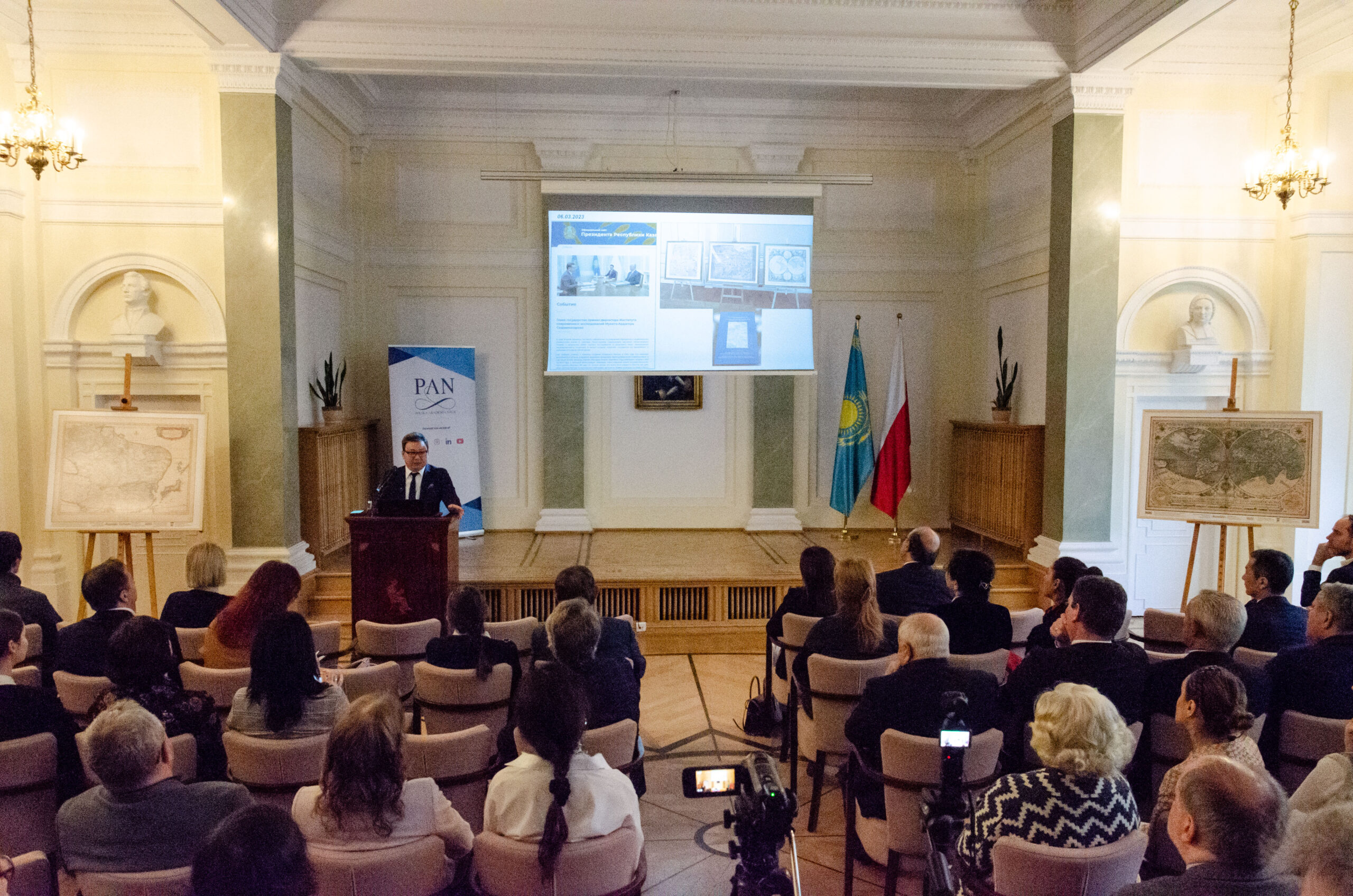 On November 12th at the Staszic Palace in Warsaw, PAS Vice-President Prof. Mirosława Ostrowska, and the Ambassador of Kazakhstan, Alim Kirabayev, inaugurated an exhibition of maps of Kazakhstan organized by the Kazakh Embassy in cooperation with the Polish Academy of Sciences.