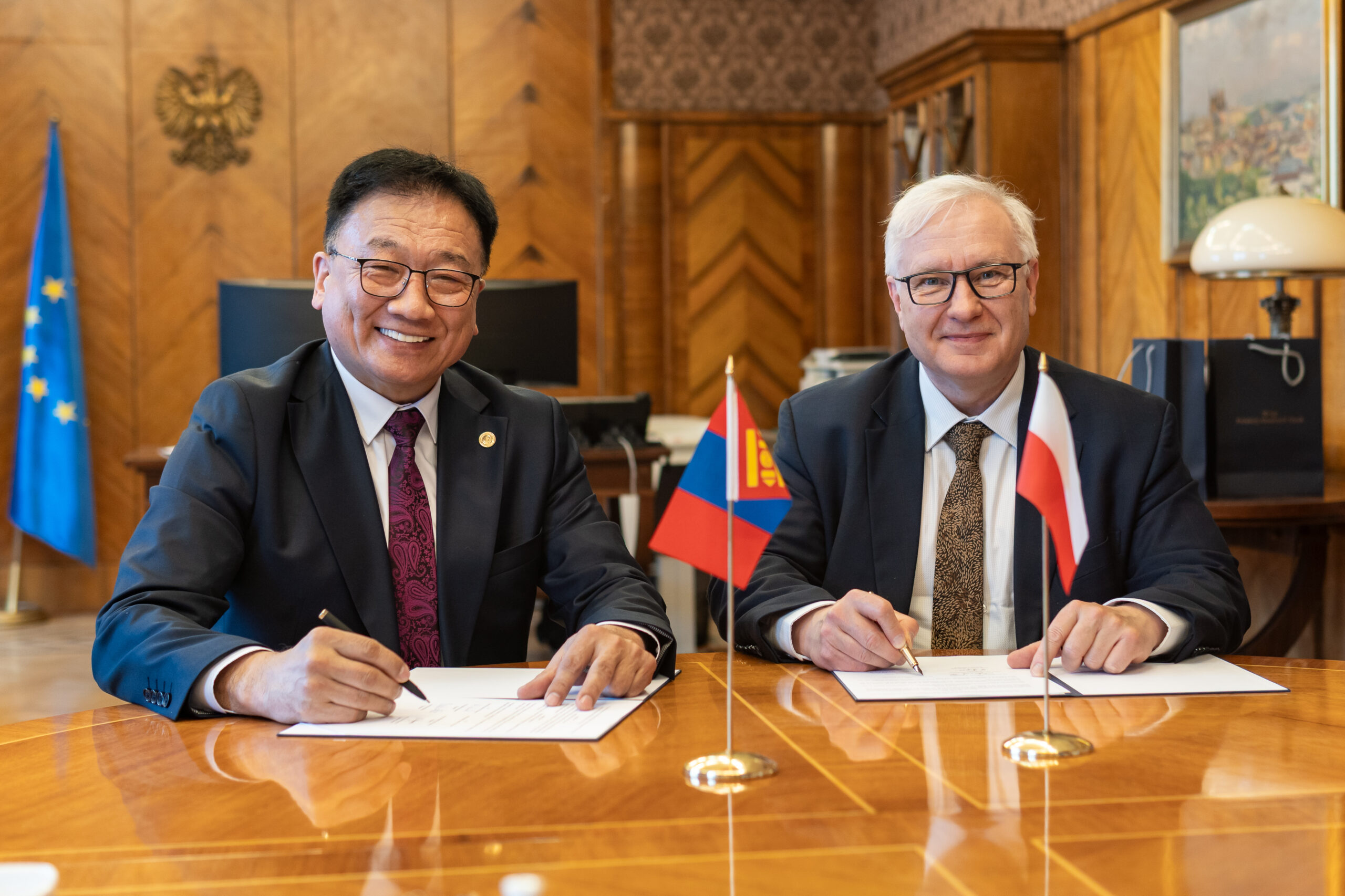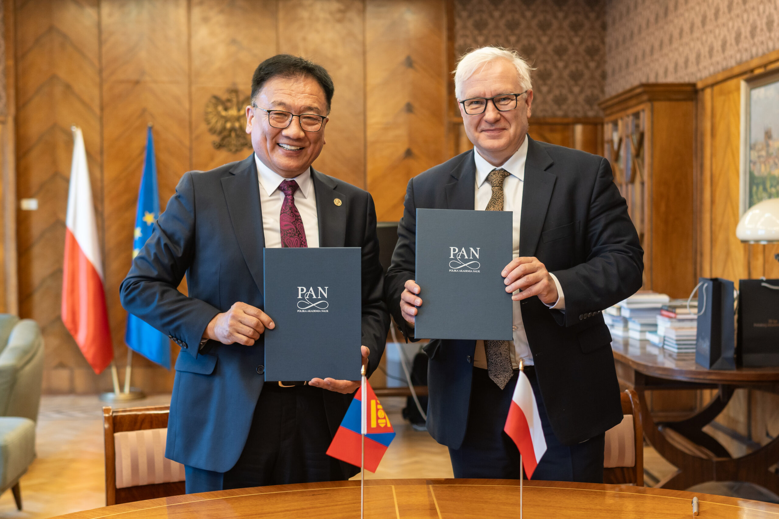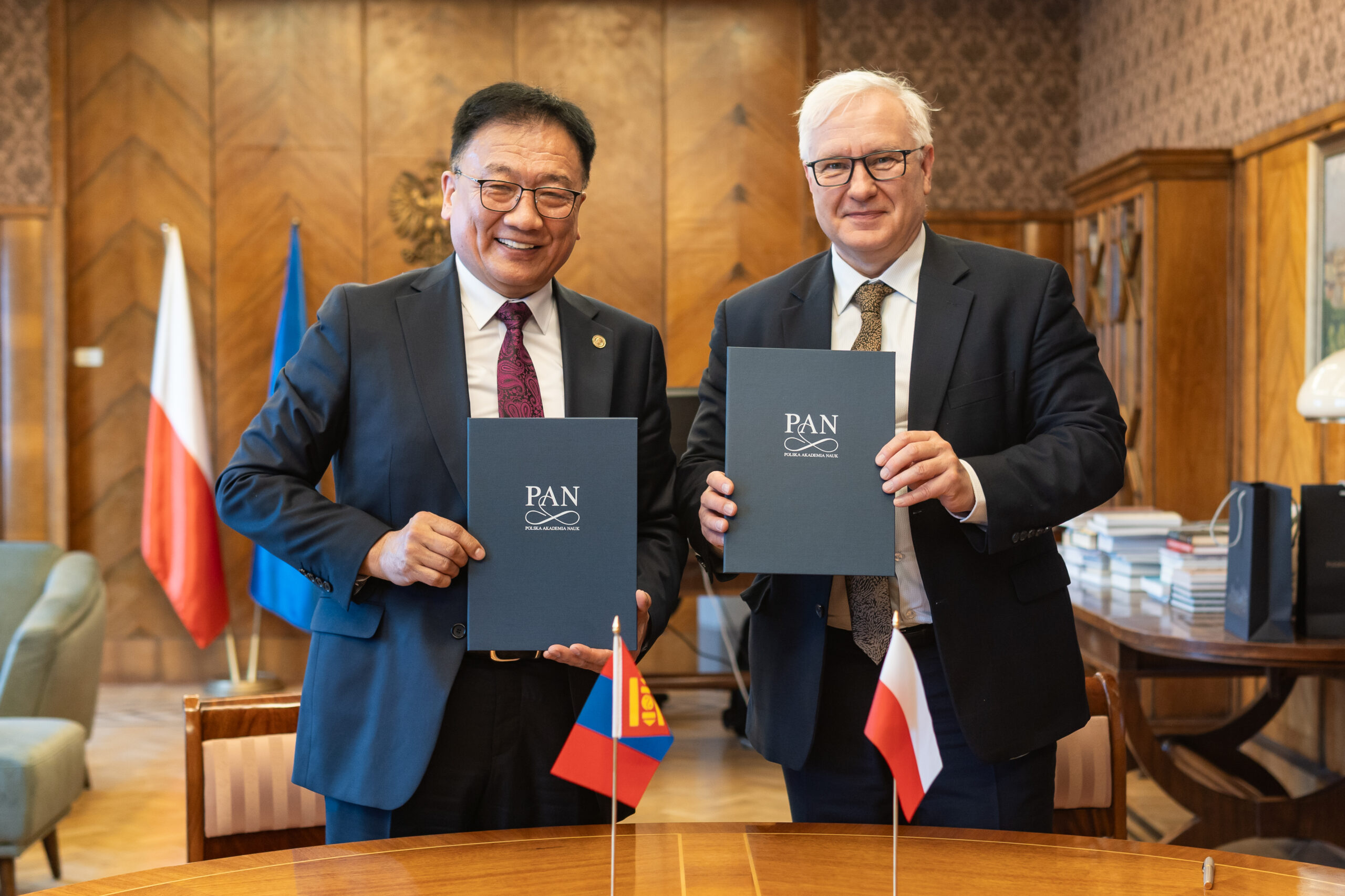 On March 13, 2025, a Scientific Cooperation Agreement was signed between the Polish Academy of Sciences (PAS) and the Mongolian Academy of Sciences (MAS) at the Presidential Palace in Warsaw. The document was signed by the President of PAS, Prof. Marek Konarzewski, and the President of MAS, Prof. Demberel Sodnomsambuu. During the ceremony at the Presidential Palace, a Memorandum of Understanding was also concluded between the Institute of Paleobiology of the PAS and the Institute of Paleontology of the MAS.