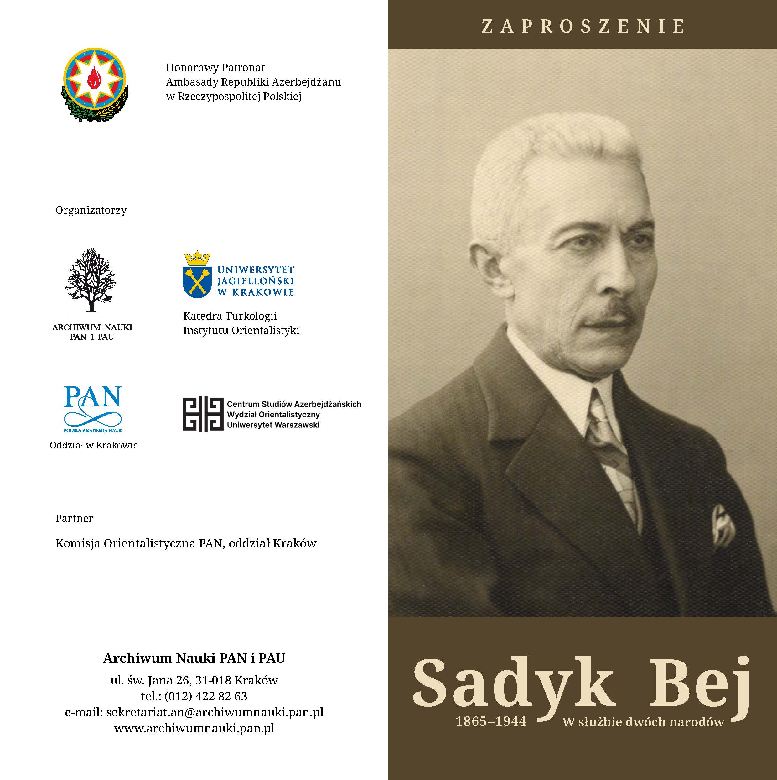Archiwum Nauki PAN i PAU: Seminarium "Sadyk-Bej (1865 - 1944). W służbie dwóch narodów"