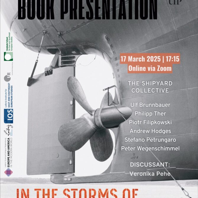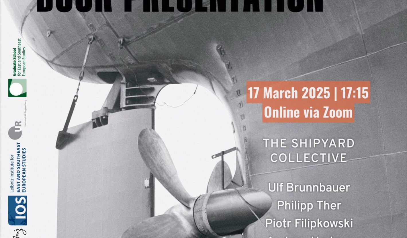 W poniedziałek 17 marca o godz 17:15 zapraszamy na prezentację książki Two Shipyards between Socialism and the EU (University of Toronto Press), dotyczącej pamięci transformacji w Polsce i Chorwacji na tle globalnych przemian ekonomicznych. Pracę wydał zespół badawczy w składzie: Ulf Brunnbauer, Philipp Ther, Piotr Filipkowski, Peter Wegenschimmel, Stefano Petrungaro, Andrew Hodges.